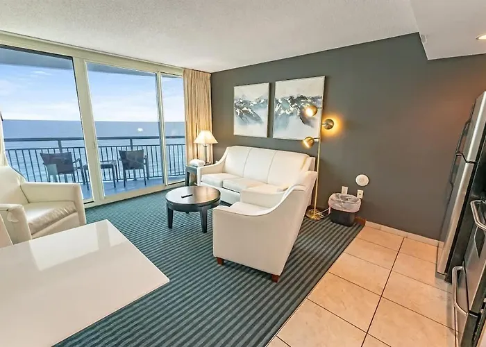 Offering a patio overlooking the city, Brand New Oceanfront Honeymoon Suite, Pools, Views Myrtle Beach villa is located just a 5-minute walk from the Family Kingdom Water Park.